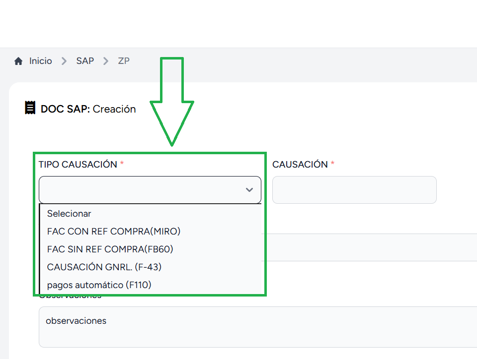 - Seleccionar “TIPO CAUSACIÓN".