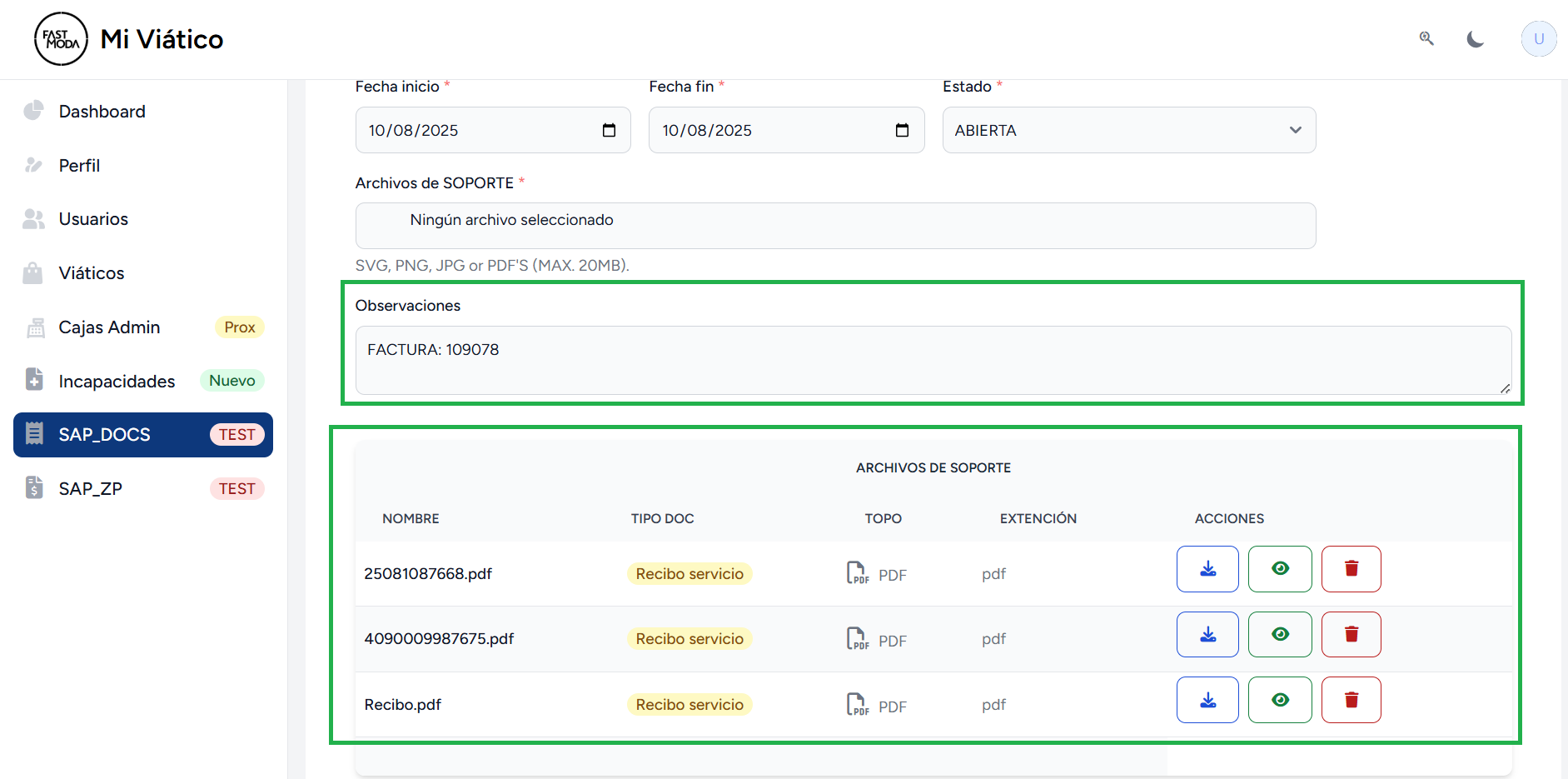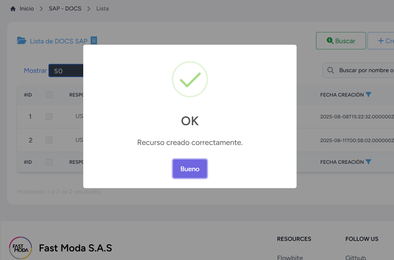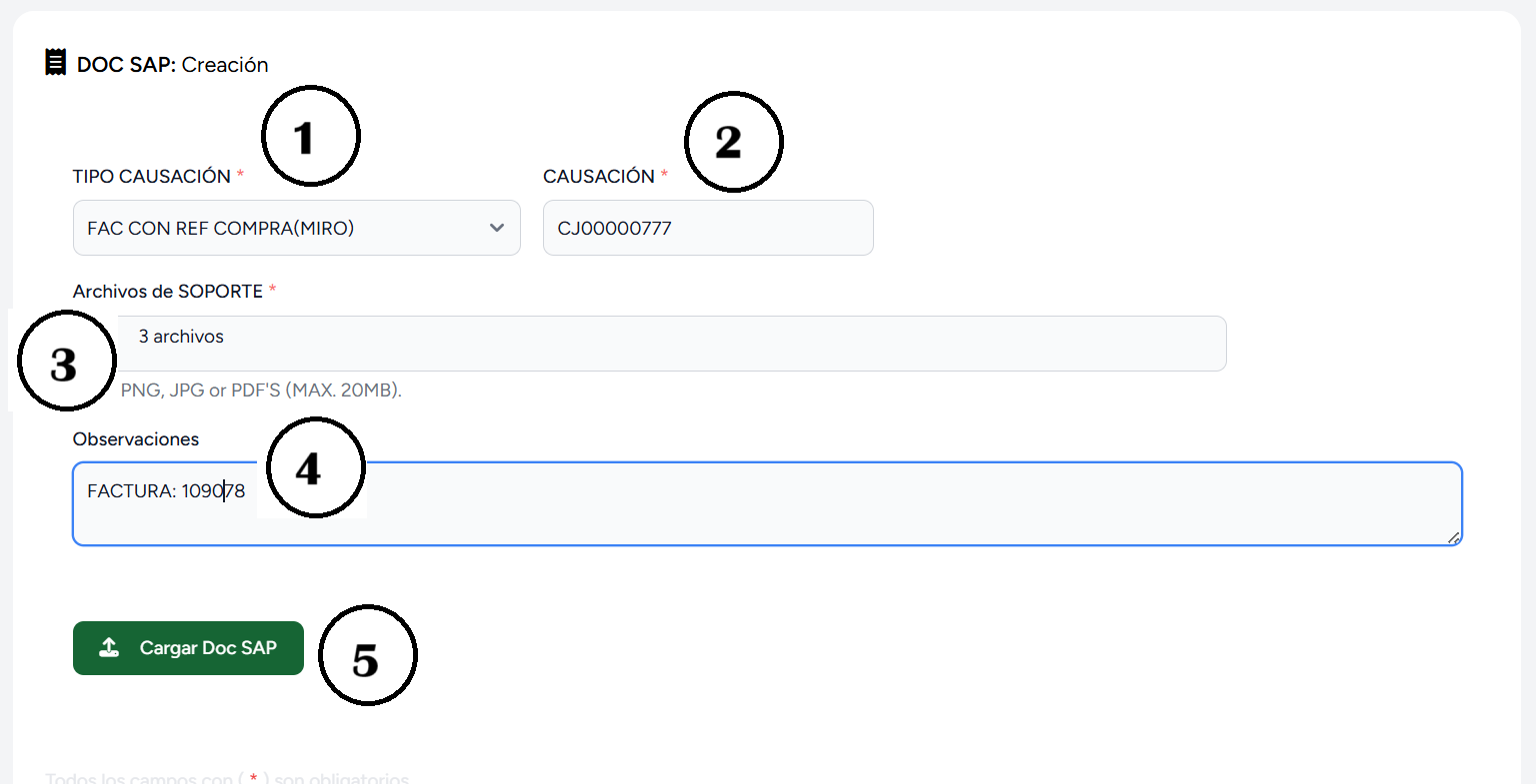 - Dar click en botón “📤 Cargar Doc SAP ” para crear el paquete Doc SAP.