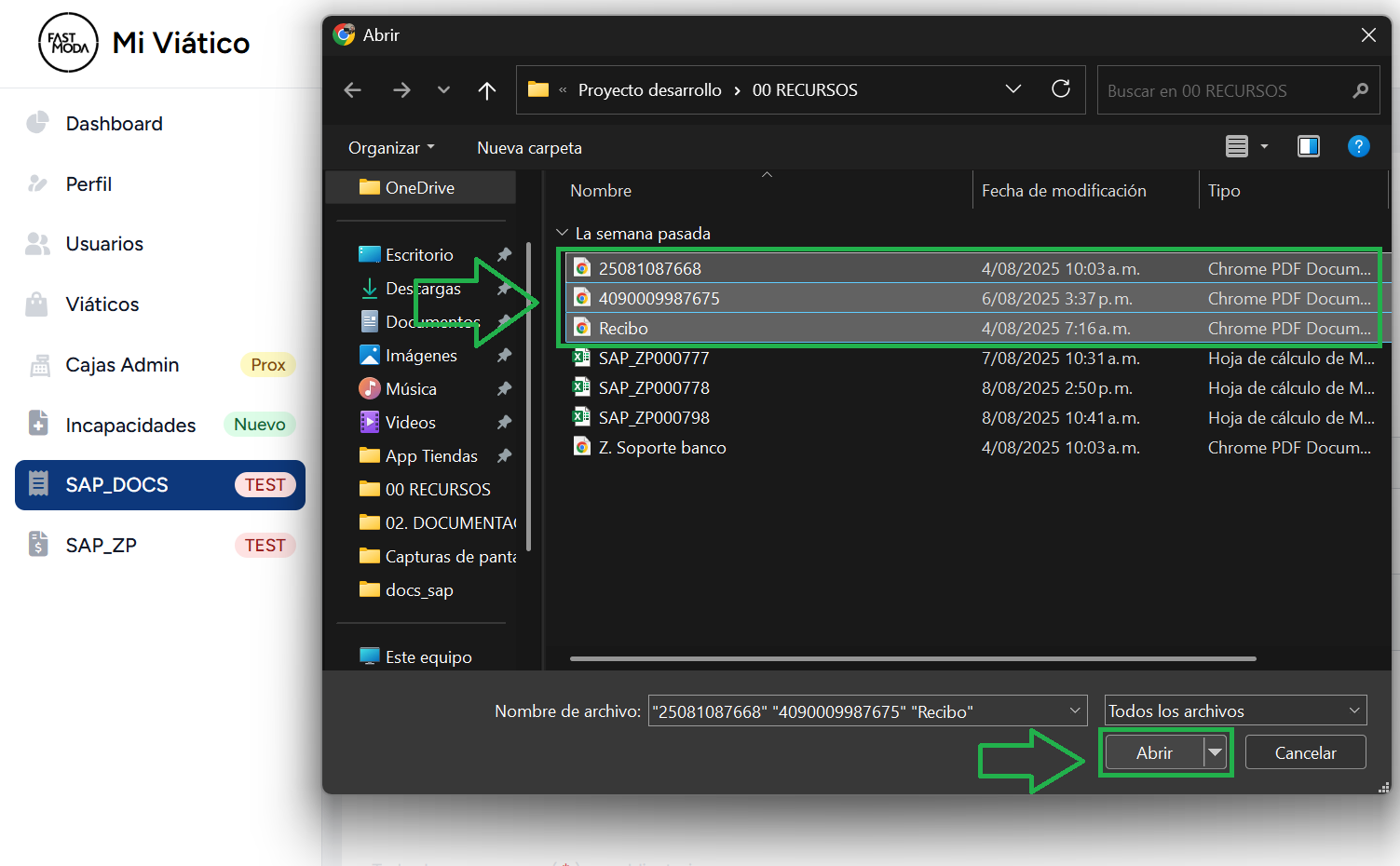 - Clic en recuadro Archivos de SOPORTE y seleccionar todos los archivos requeridos